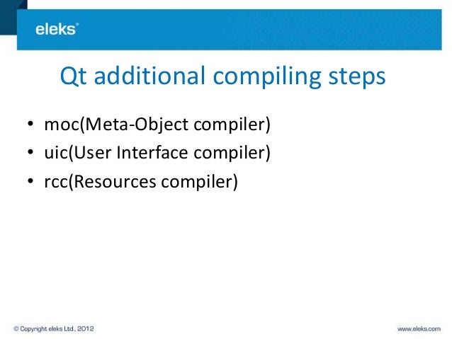 The C++ source file generated by moc must be compiled and linked with the implementation of the class. If you use to create your makefiles, build rules will be included that call the moc when required, so you will not need to use the moc directly. For more background information on moc, see Usage moc is typically used with an input file containing class declarations like this. Moc_foo.cpp: foo.h moc $(DEFINES) $(INCPATH) $. Option Description -o Write output to rather than to standard output. -f[] Force the generation of an #include statement in the output.